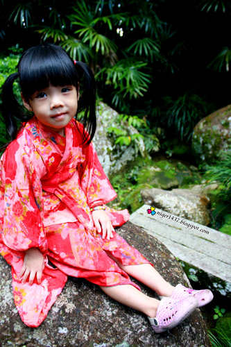 来到日本村,我还特意为小薰换上了我自备的日本浴袍,kimono!结果,有更多外国游客抓小薰来合照!哈哈哈~在法国村穿可爱吊带裤的小薰就已经被别人误会成是日本小孩了。换上kimono就更加令人误会!哈哈哈哈~